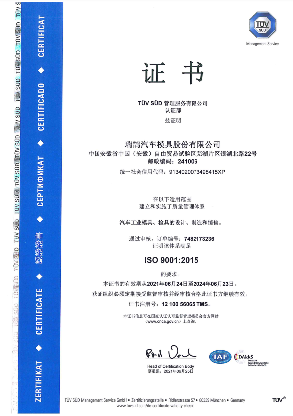 ????????瑞鵠汽車模具股份有限公司成立于2002年3月,坐落于中國(安徽)自由貿(mào)易試驗區(qū)蕪湖片區(qū)銀湖北路 22 號,股本數(shù)18360萬,公司的主營業(yè)務為汽車沖壓模具、檢具及焊裝自動化生產(chǎn)線的開發(fā)、設計、制造和銷售,主要產(chǎn)品有沖壓模具(覆蓋件模具、高強板模具)及檢具、焊裝自動化生產(chǎn)線、一體化鋁壓鑄零部件,為國內(nèi)少數(shù)能夠同時為客戶提供完整的汽車白車身高端制造裝備、智能制造技術及整體解決方案的企業(yè)之一。